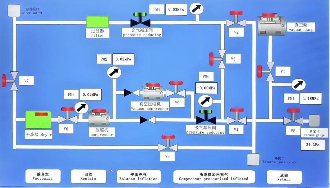 Das KSLH-110Y/160-1200WZ-Hochleistungs-Automatisierungssystem wurde für Spannungsprüfungen von 550 kV Isolationstanks im Stromnetz optimiert.Es integriert einen 110 m3/h ölfreien, luftgekühlten Kolben-Hauptkompressor, ein 160m3/h negativer Druckkompressor (≤ 5Pa Höchstvakuum), eine 63m3/h Rohrleitung Vakuumpumpe (≤ 5Pa Höchstvakuum) und ein horizontaler Lagertank aus 1200L 304 Edelstahl,Verzinkter Lagerbehälter aus Kohlenstoffstahl (optional), für ein effizientes Management von Hochdruck-SF6.